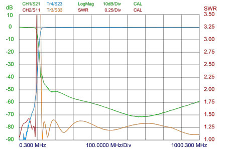 | Insertion Loss | 0 – 88 MHz : 0.7 dB 136 – 960 MHz : 0.7 dB |